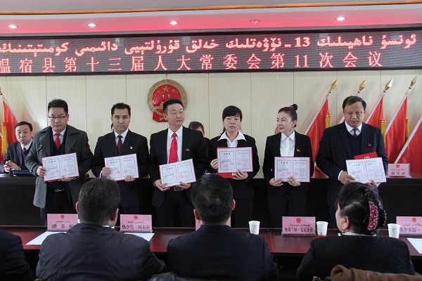 经温宿县监察委员会主任提请,县人大常委会依法任命了县监察委员会副主任2名,委员4名,并颁发了任命书