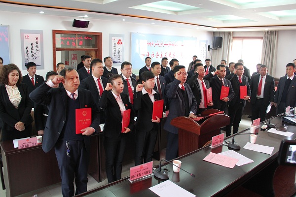 新当选的温宿县监察委员会全体成员庄严宣誓