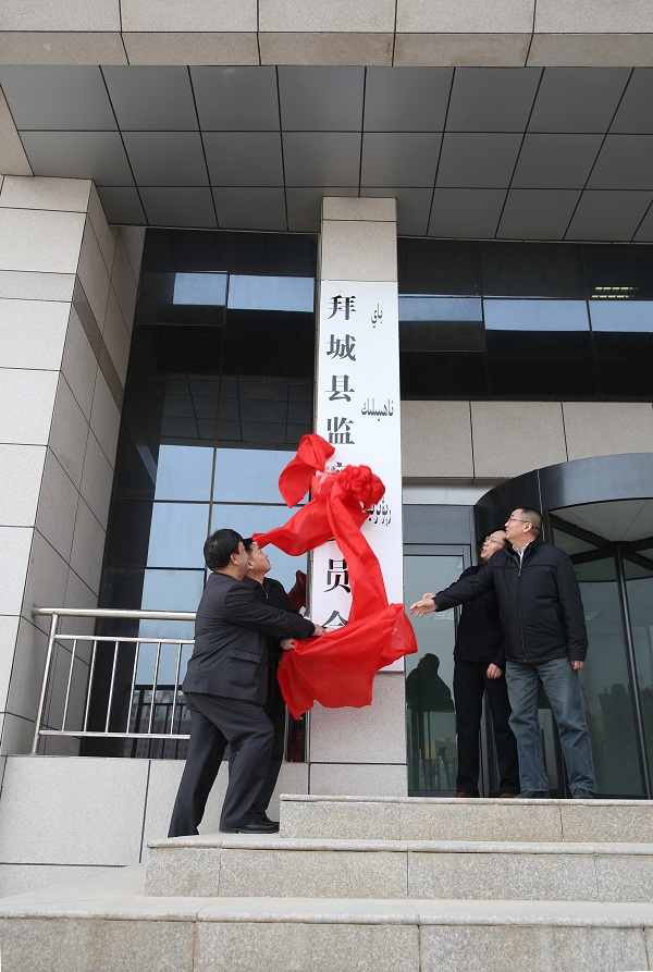 1月15日下午,拜城县监察委员会正式挂牌成立。地委委员、纪委书记、地区深化国家监察体制改革试点工作小组副组长王志华与拜城县委书记、县深化国家监察体制改革试点工作小组组长秦加友共同为监察委员会揭牌。