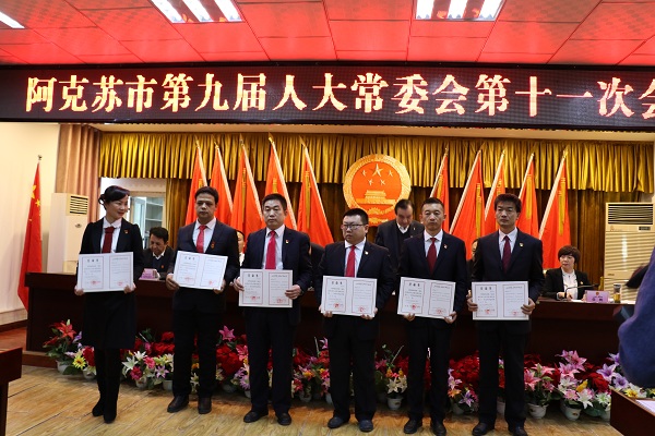1月15日,阿克苏市第九届人民代表大会第三次会议选举产生了阿克苏市监察委员会主任。根据监委主任提名,阿克苏市人大常委会任命2名监委副主任和4名监委委员,新当选的监委班子成员集体向宪法进行宣誓。