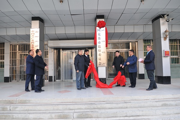 1月16日上午,阿克苏市监察委员会正式挂牌成立。地委委员、市委书记马国强与地委委员、纪委书记王志华共同为监察委员会揭牌。市委常委、纪委书记、监委主任阿力木江·依干拜地主持挂牌仪式。